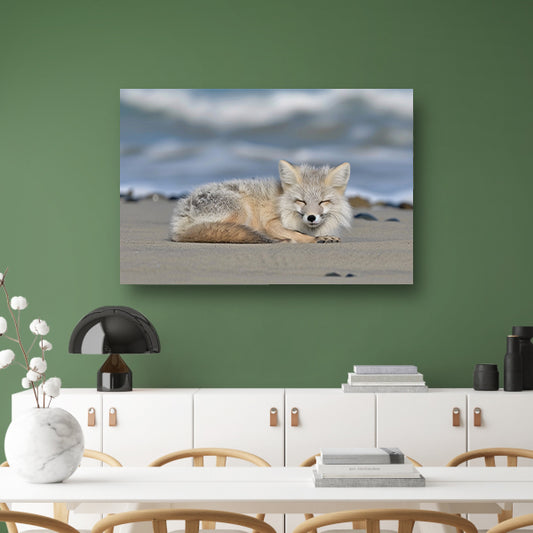 Realistische afbeelding van een vos op het strand acrylglas