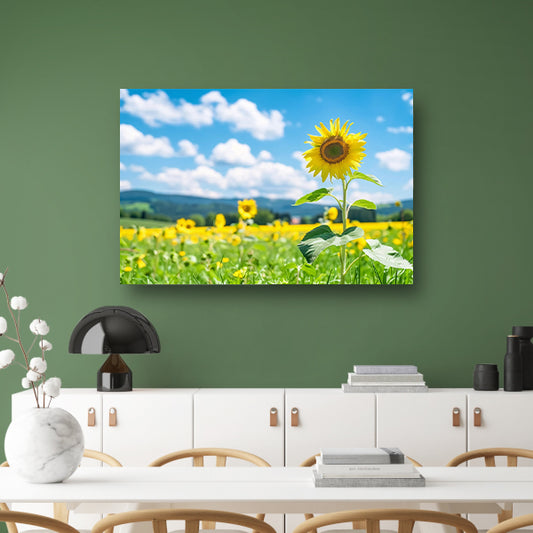 Zonnige dag met bloeiende zonnebloemen acrylglas