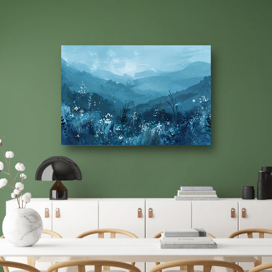 Serene bloemen en bergen in blauw acrylglas