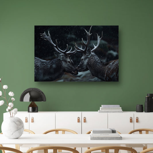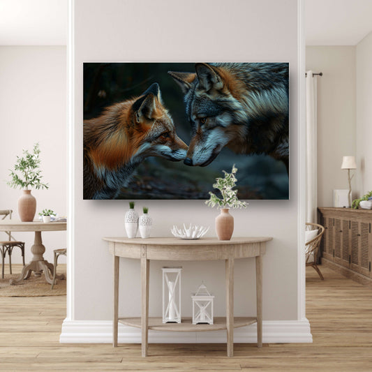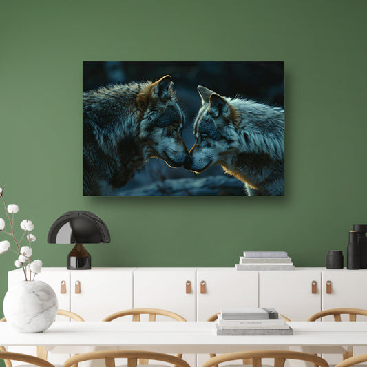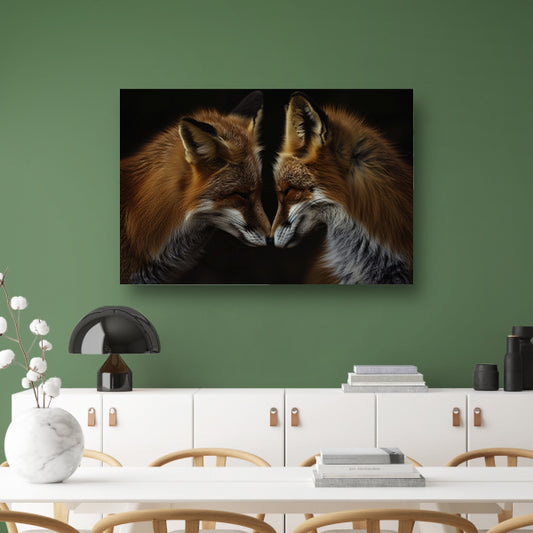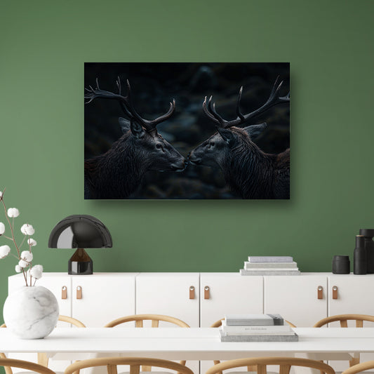 Twee tijgers in donker bos tegenover elkaar acrylglas
