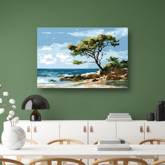Kleurrijk abstract schilderij van boom en zee acrylglas