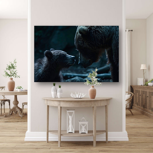 Intieme ontmoeting tussen leeuw en welp acrylglas