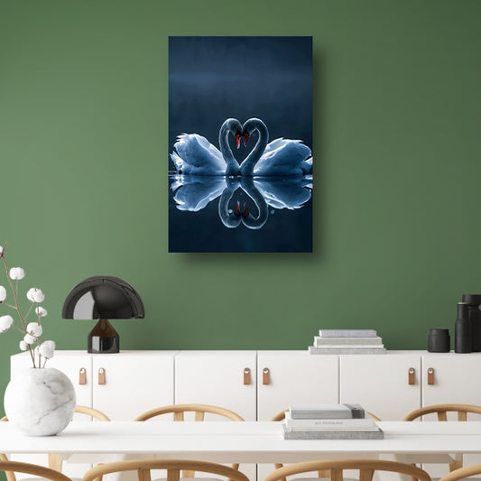 Twee zwanen vormen een hart acrylglas