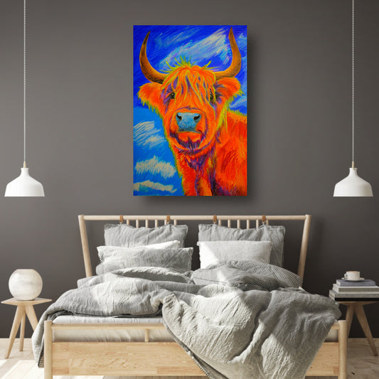 Kleurrijke moderne schilderij van Schotse Hooglander acrylglas