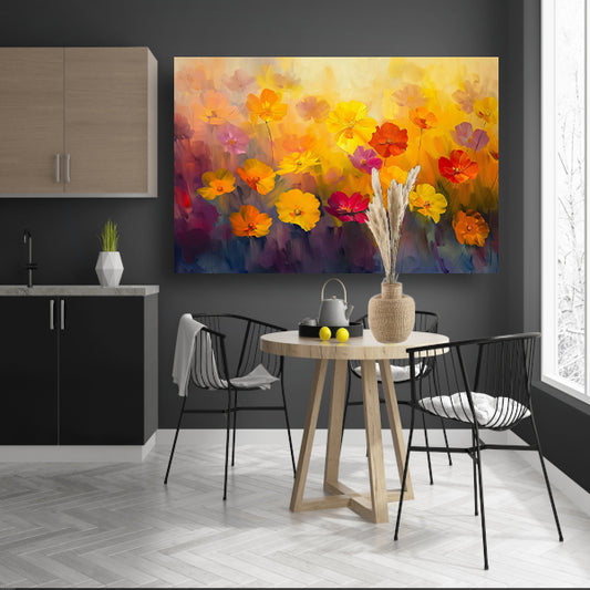 Abstract kleurrijk bloemenveld schilderij voor interieur acrylglas