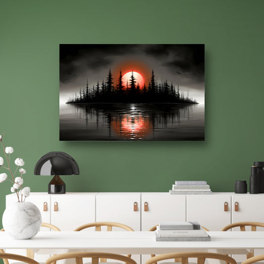 Minimalistisch schilderij van silhouet eiland en zonsopgang acrylglas