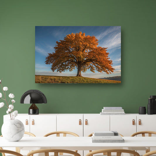 Majestueuze herfstboom in een weids landschap acrylglas