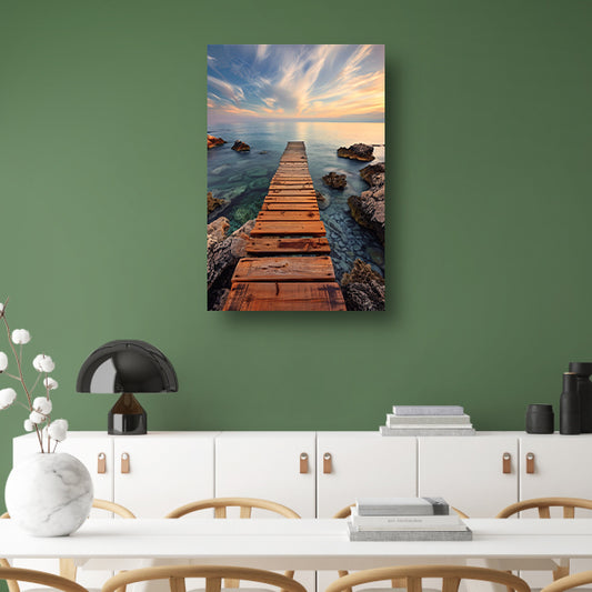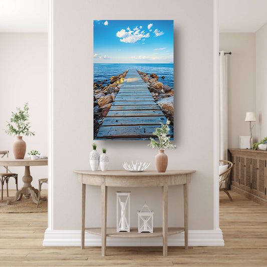 Houten steiger leidt naar serene blauwe zee acrylglas