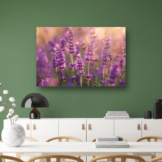 Betoverende zonsondergang over een lavendelveld acrylglas
