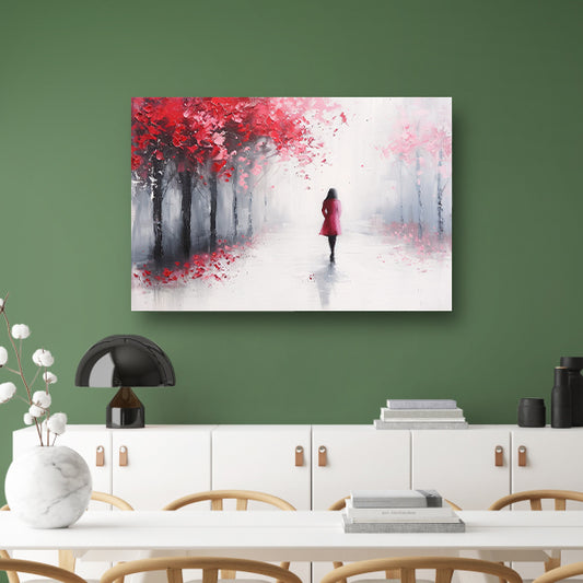 Vrouw wandelt in herfstlandschap met bomen acrylglas