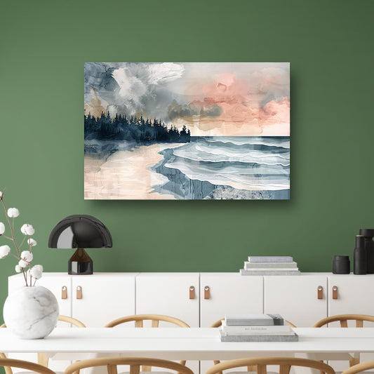 Surrealistisch strandlandschap met schilderachtige bomen acrylglas
