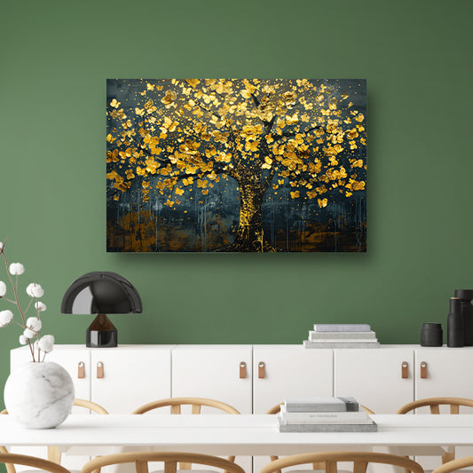 Boom met gouden bladeren tegen abstracte achtergrond acrylglas