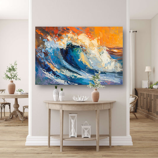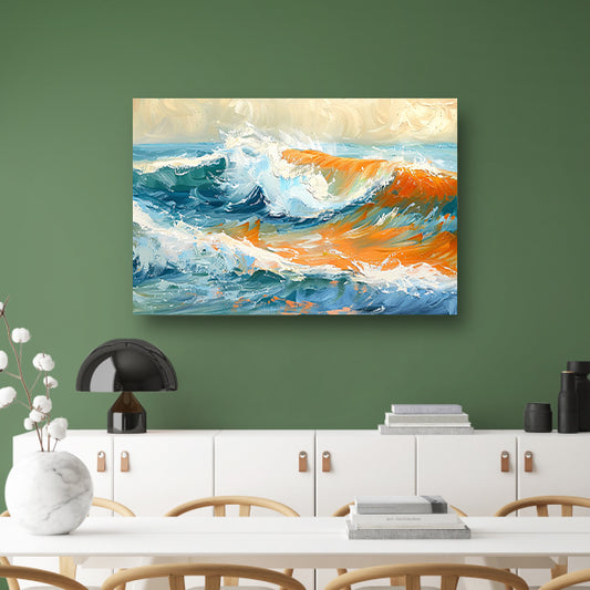 Dynamisch impressionistisch schilderij van een golf acrylglas