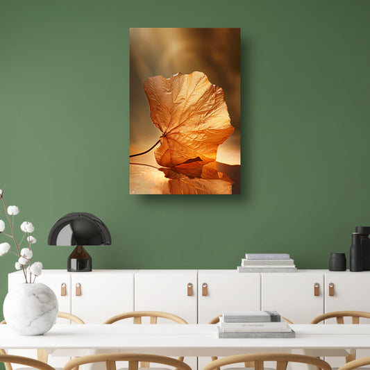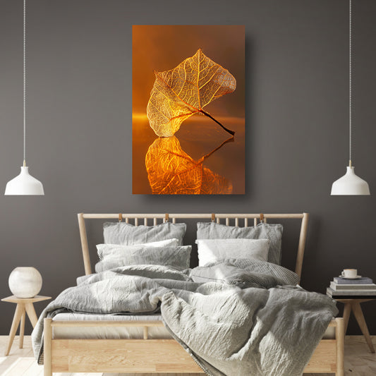 Blad perfect weerspiegeld in gouden licht acrylglas