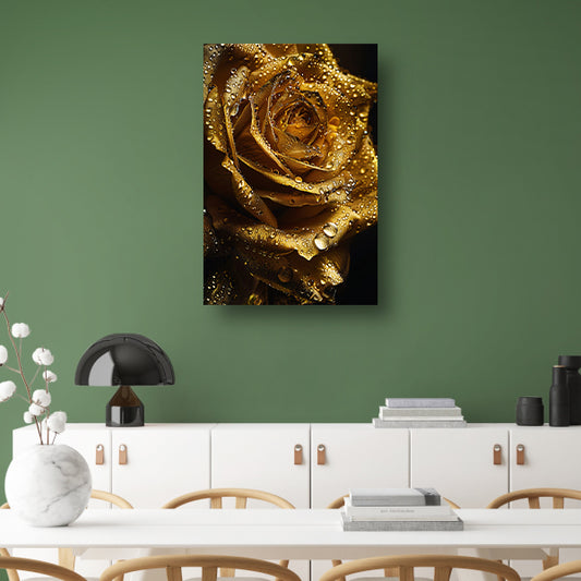 Gouden roos met fonkelende waterdruppels close-up acrylglas