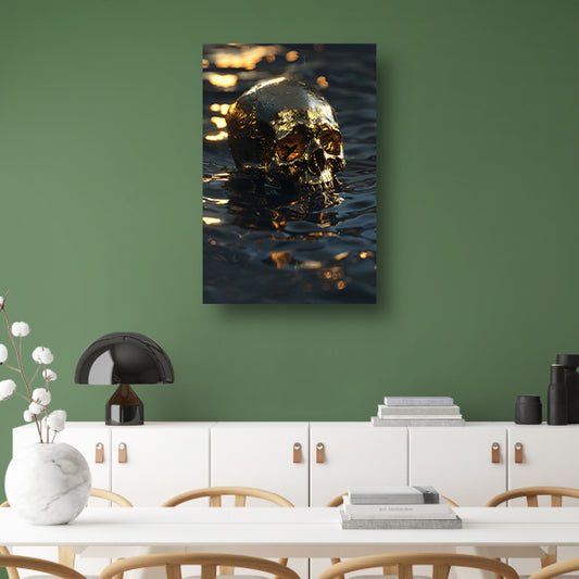 Mystieke Gouden Schedel Reflectie in Donker Water acrylglas