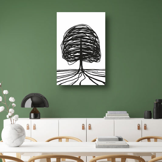 Zwarte lijnen boom met wortels illustratie acrylglas