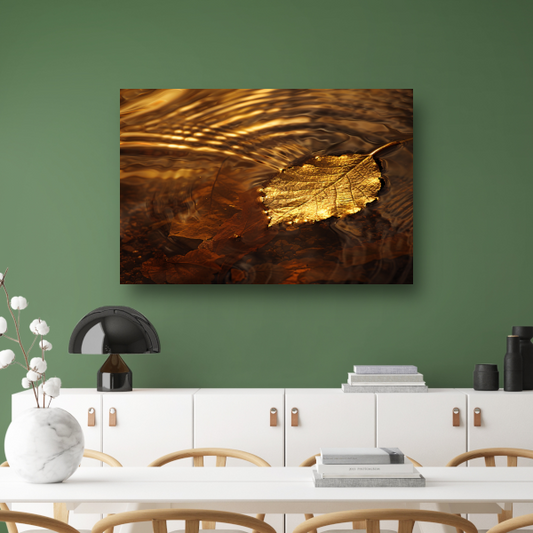 Gouden blad op kalme wateren bij zonsondergang acrylglas