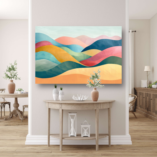 Abstracte heuvels in levendige kleurencombinatie acrylglas
