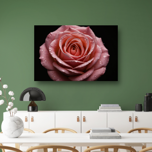Roze Roos met Dauwdruppels op Zwart acrylglas
