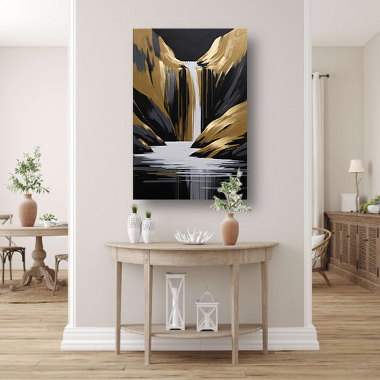 Gouden Accenten Abstracte Waterval Monochroom Acrylglas