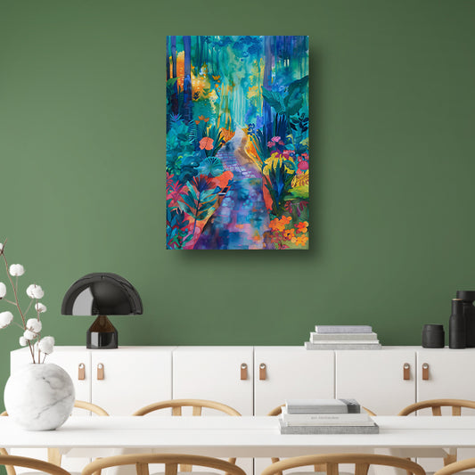 Kleurrijke aquarel van een zomerlandschap canvas met baklijst