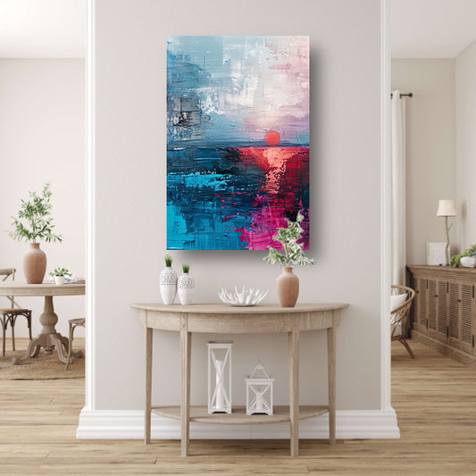 Abstracte moderne schilderij van zonsondergang canvas met baklijst