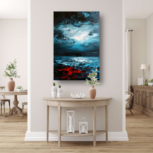 Dynamische abstracte zee- en luchtkunst canvas met baklijst