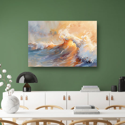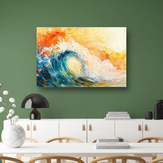 Dynamisch impressionistisch schilderij van een golf canvas met baklijst