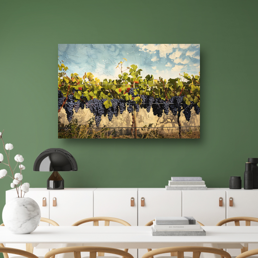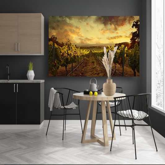 Herfstzon gloeit over golvende wijngaard acrylglas