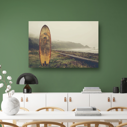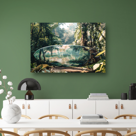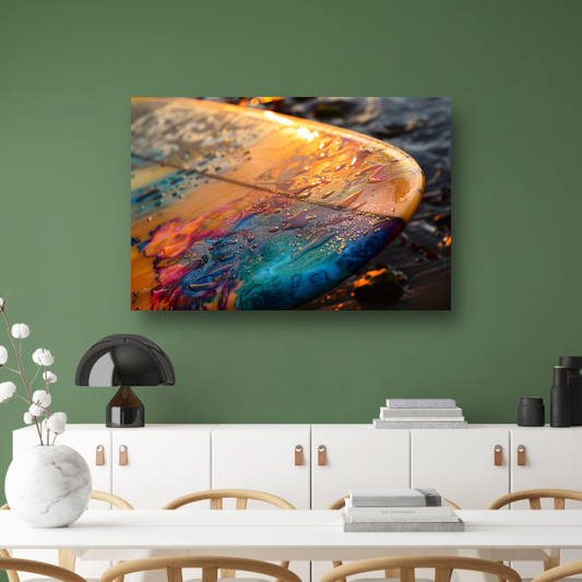 Kleurrijke Surfplank in Glinsterende Zee bij Zonsondergang acrylglas