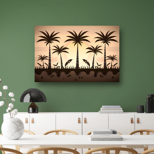 Realistisch schilderij van bomen en varens canvas met baklijst
