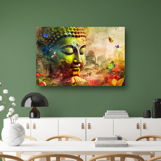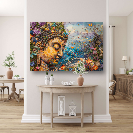Harmonieuze Boeddha met natuur en vlinders acrylglas