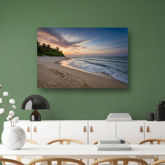 Prachtige zonsondergang aan rustig strand canvas met baklijst