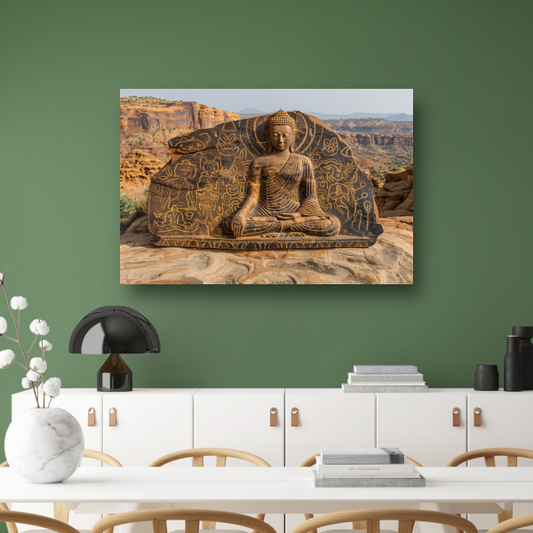 Meditatief Boeddha Sculptuur in Rotswand acrylglas