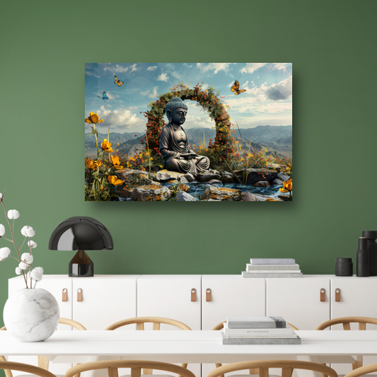Mediterende Boeddha in Bloeiend Paradijs acrylglas