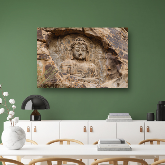 Serene Boeddha Uitgehakt in Rotswand acrylglas