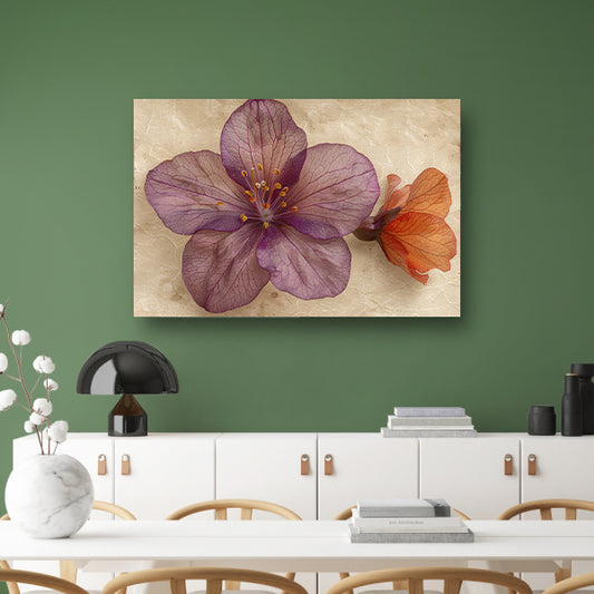 Paarse bloem met vintage achtergrond canvas met baklijst