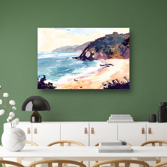 Minimalistisch schilderij van strand bij zonsopgang canvas met baklijst