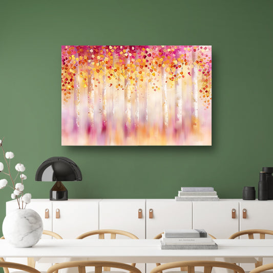 Abstract schilderij van kleurrijk herfstbos canvas met baklijst