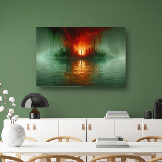Mystieke natuur en magische luchten reflectie canvas met baklijst