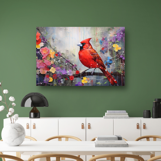Schilderij: Rode kardinaal, bloemen acrylglas