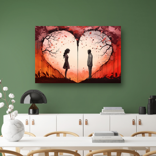 Scheiding door liefde, hartvormige zonsondergang acrylglas