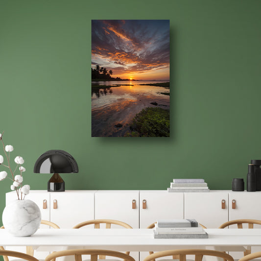Adembenemende zonsondergang weerspiegeld in water canvas met baklijst