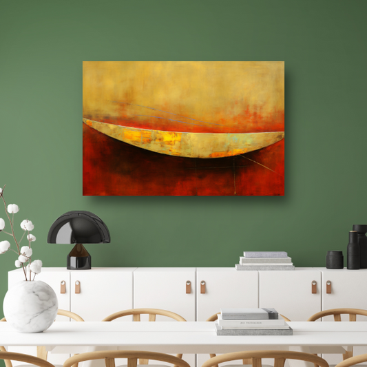 Abstracte compositie van kleurrijke boot op rood acrylglas