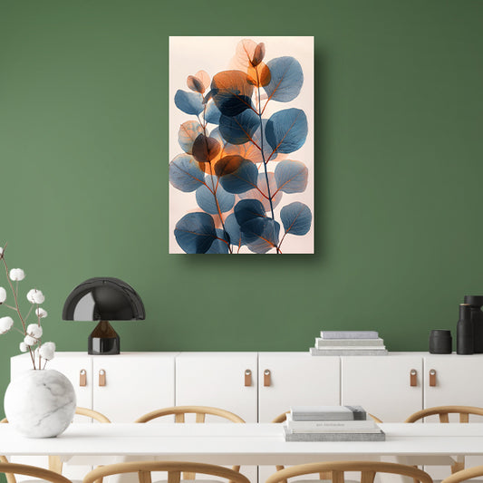 Elegante eucalyptusbladeren in zilveren en blauwe tinten canvas met baklijst