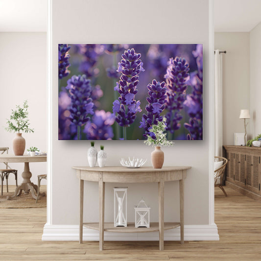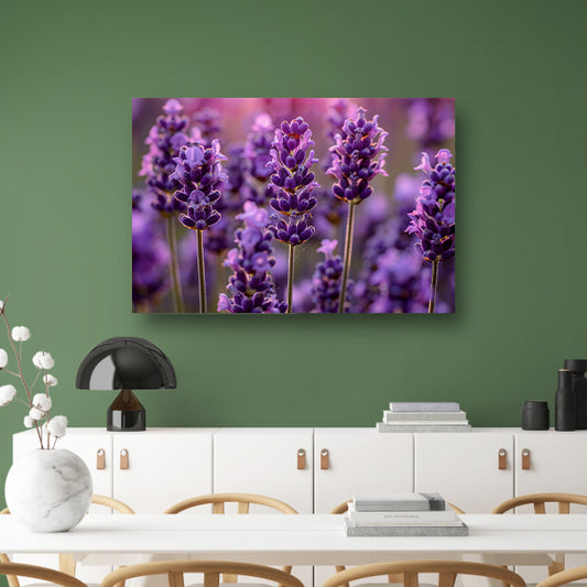 Levendige paarse lavendelbloemen in natuurlijke omgeving canvas met baklijst