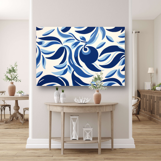 Minimalistische lijnencompositie in blauw en wit acrylglas