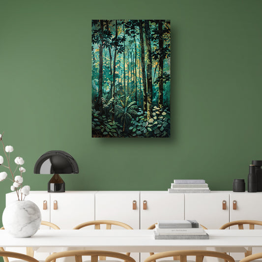 Kleurrijk schilderij van een boslandschap canvas met baklijst