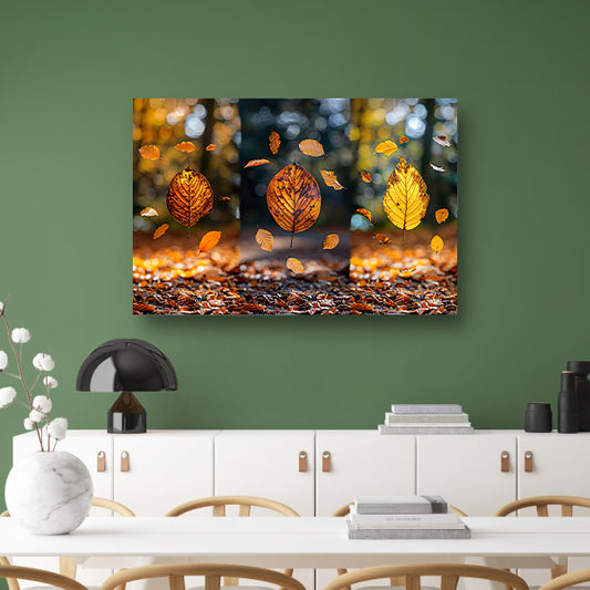 Herfstbladeren dansend in zacht licht canvas met baklijst